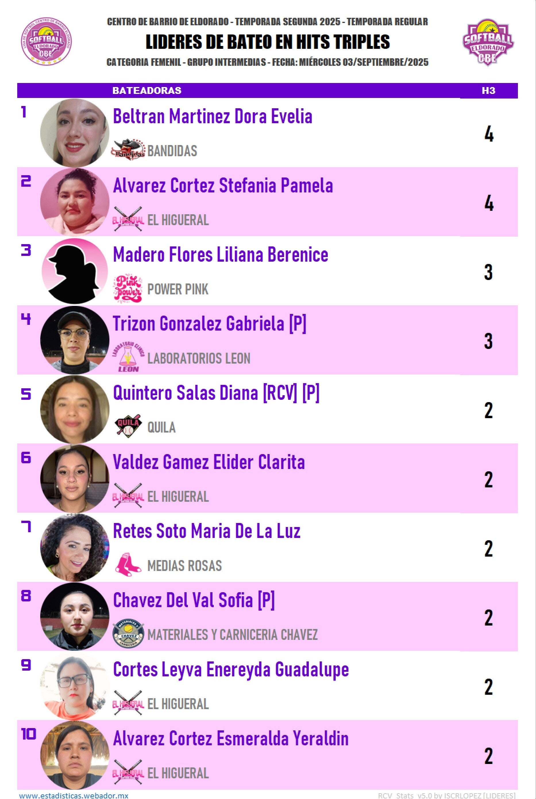 Estadísticas de Softbol