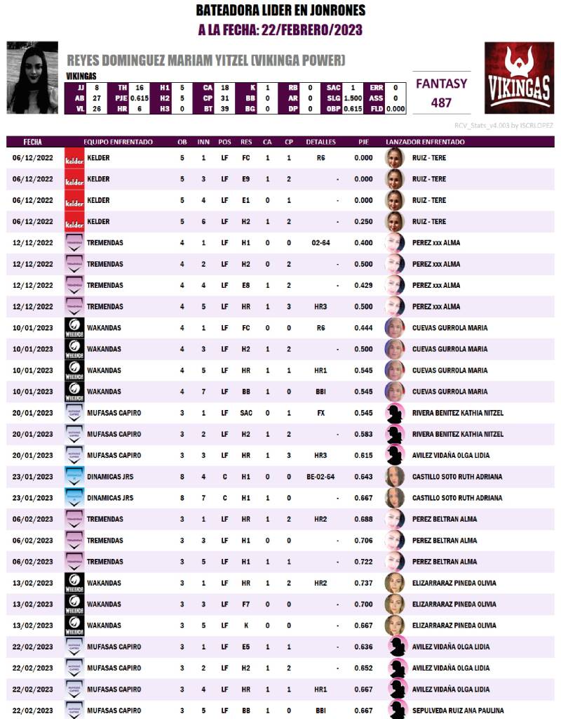 Estadísticas de Softbol