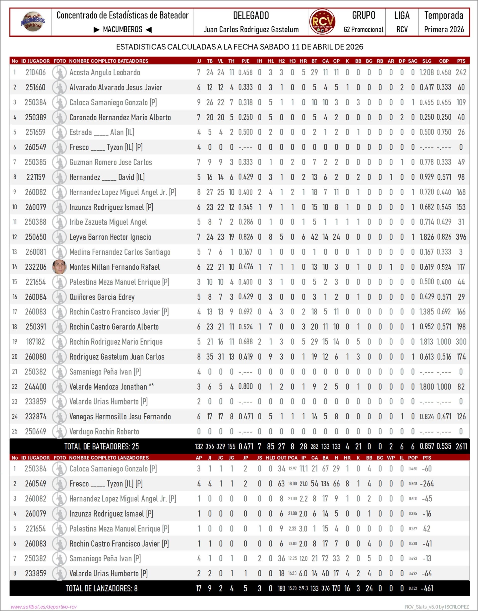 Estadísticas de Softbol