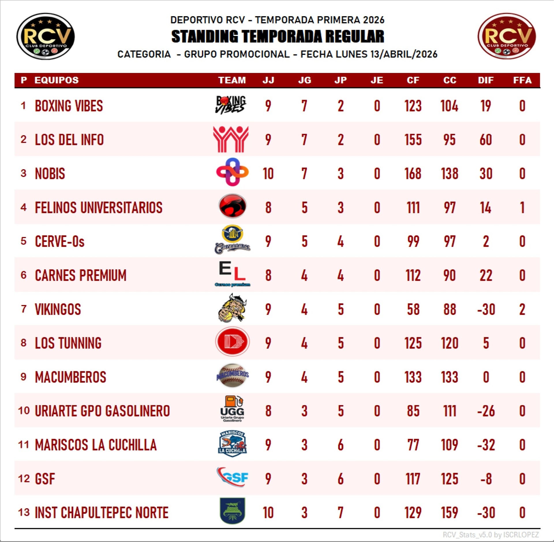 * BOXING VIBES domina a LOS DEL INFO.* No hay dominio entre VIKINGOS, LOS TUNNING y MACUMBEROS. Se aplica el criterio -CC.* MARISCOS LA CUCHILLA domina a GSF.
