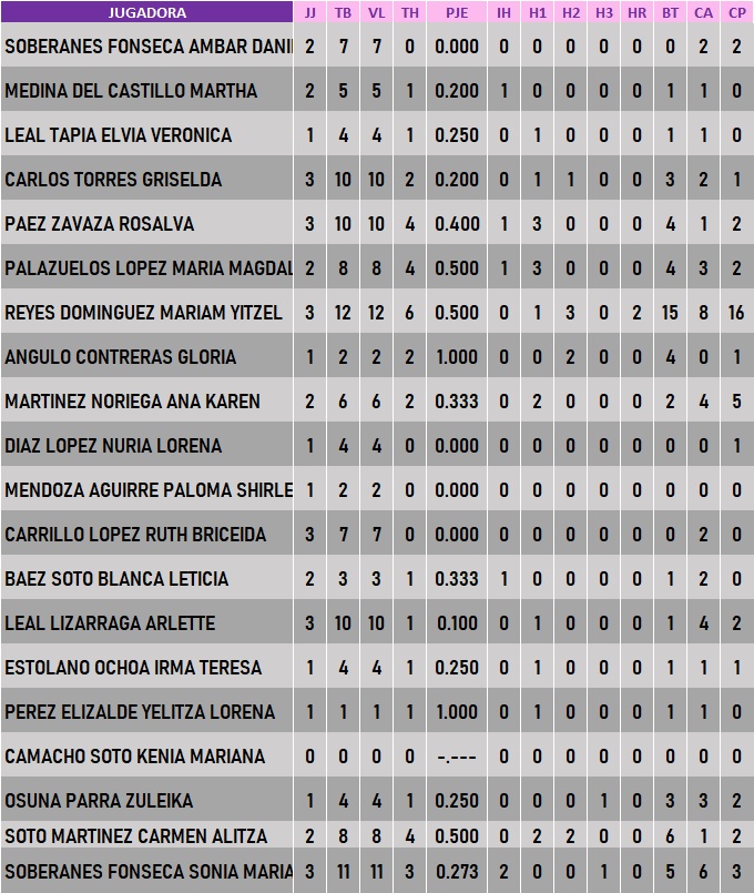 Estadísticas de Softbol